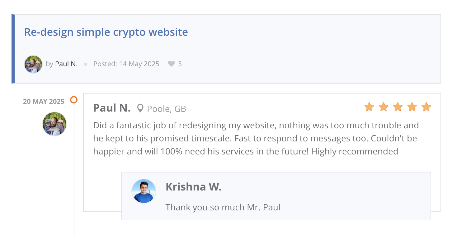 "Did a fantastic job of redesigning my website, nothing was too much trouble and he kept to his promised timescale. Fast to respond to messages too. Couldn't be happier and will 100% need his services in the future! Highly recommended" www.only1coin.net